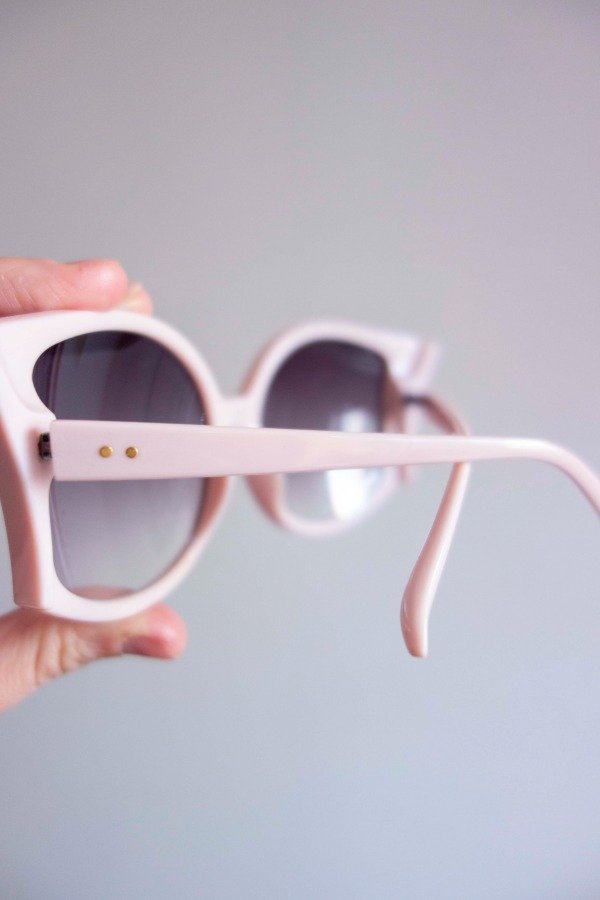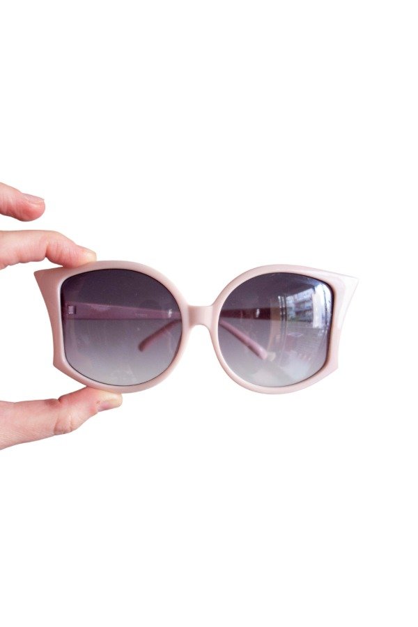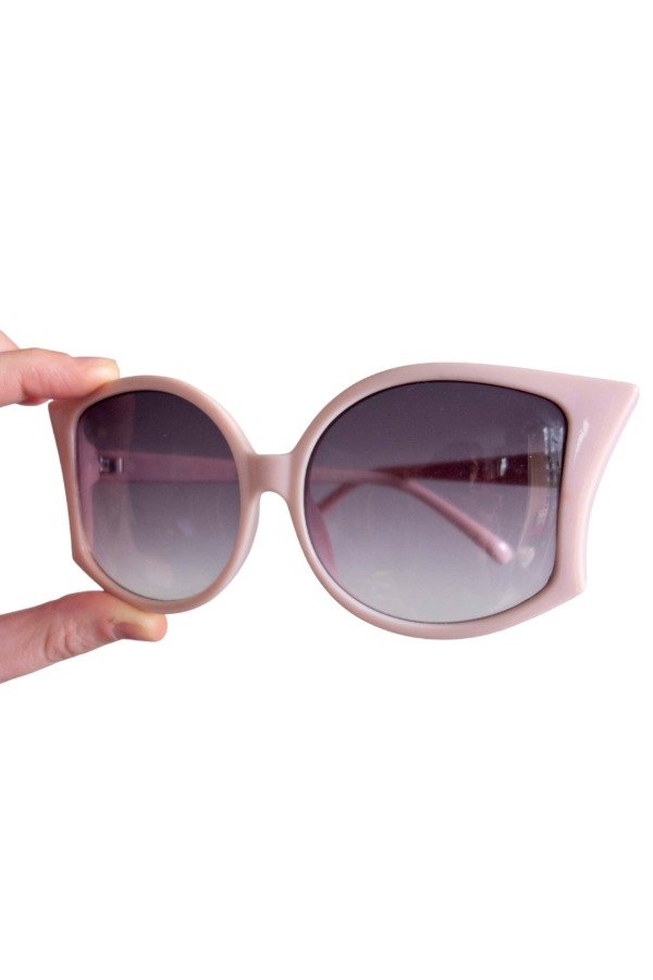 Lentes de sol con marco grueso estilo cat eye oversize, color nude rosado mate.
