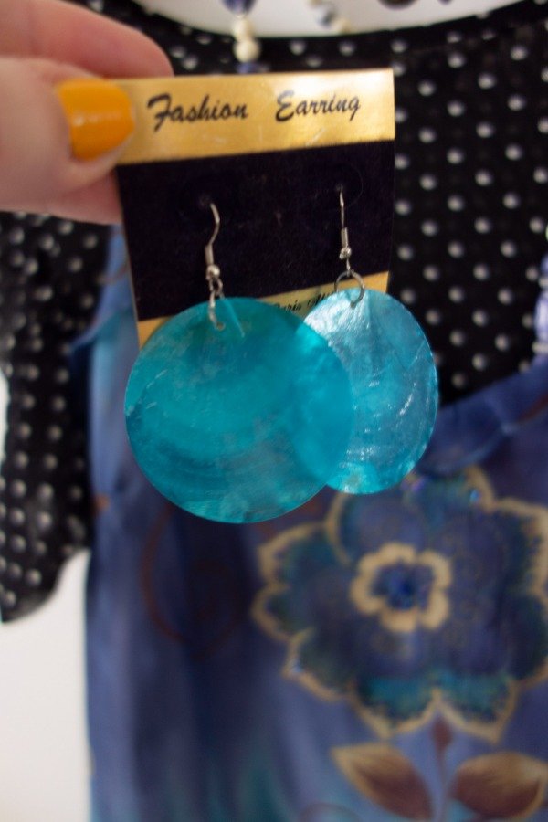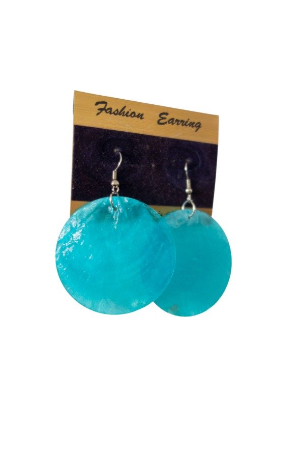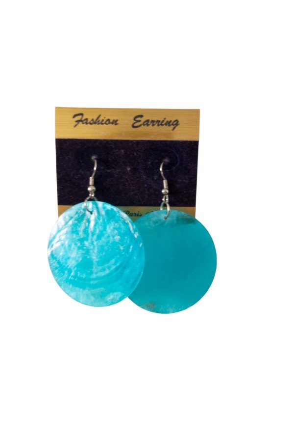 Aros pasante con forma circular de material nacarado teñido de turquesa.