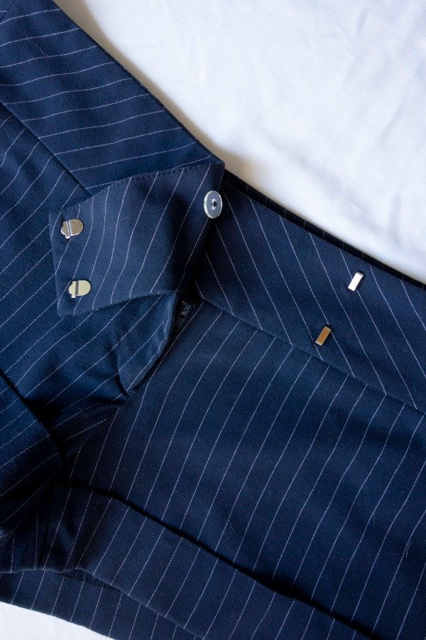 De punto roma (tiene rebote/estira) negro con rayas blancas.