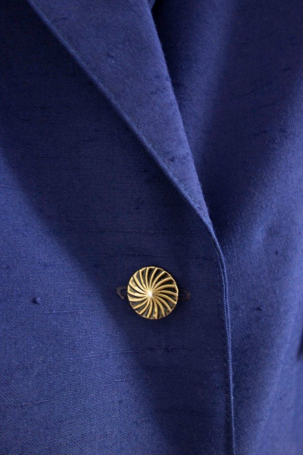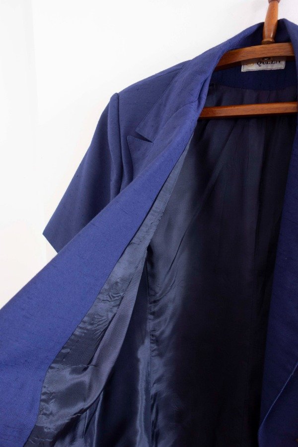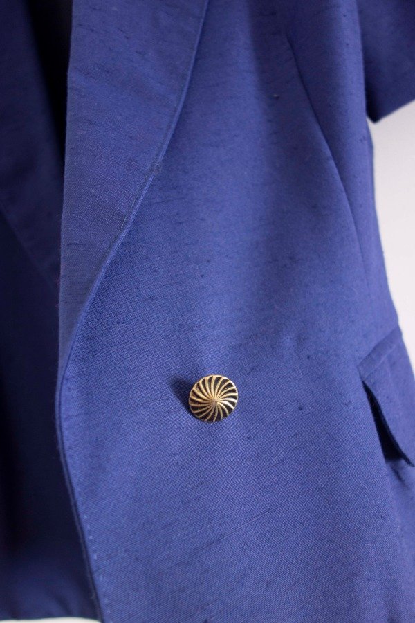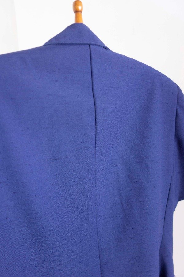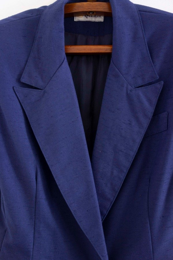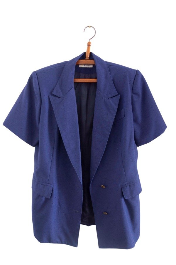 Blazer manga corta con cuello solapa en tono azul.
