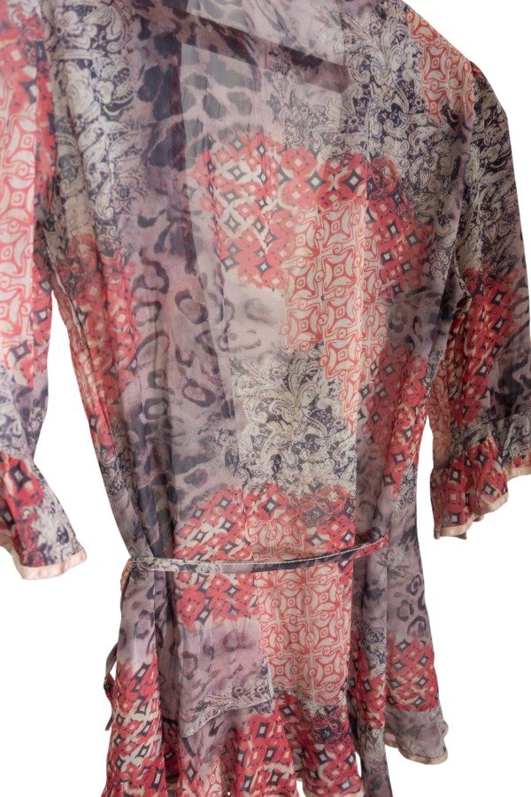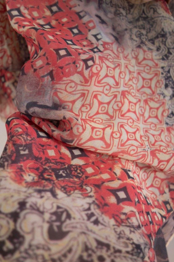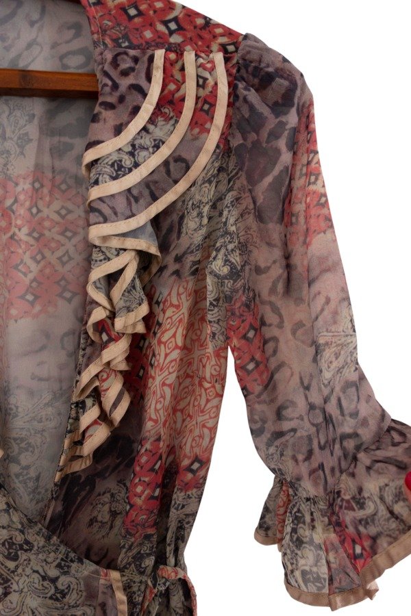 Blusa manga 3/4, de gasa liviana, estampada con un mix de diseños que combina