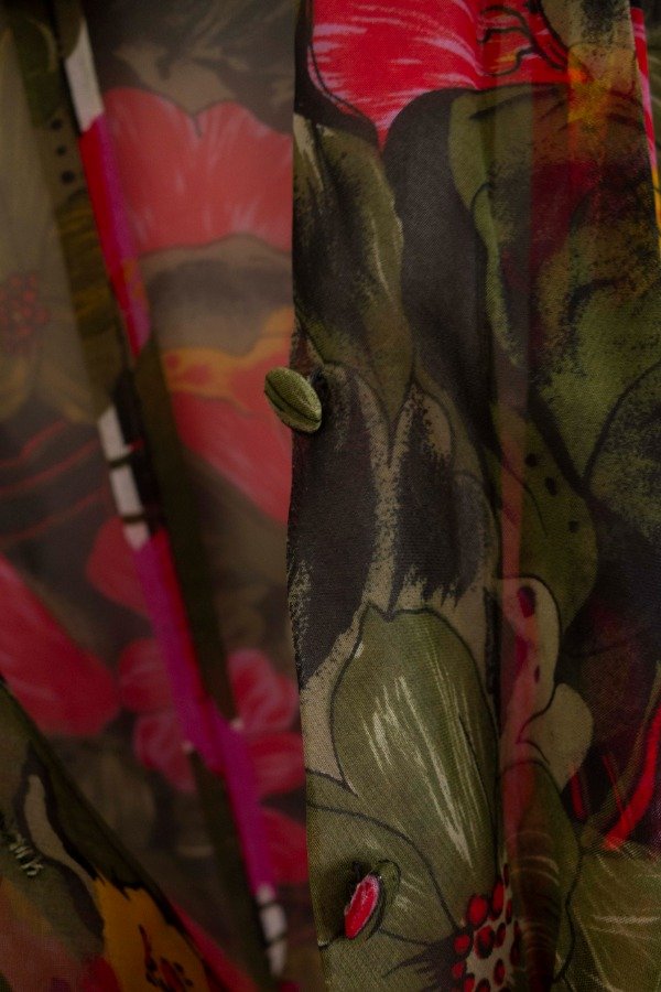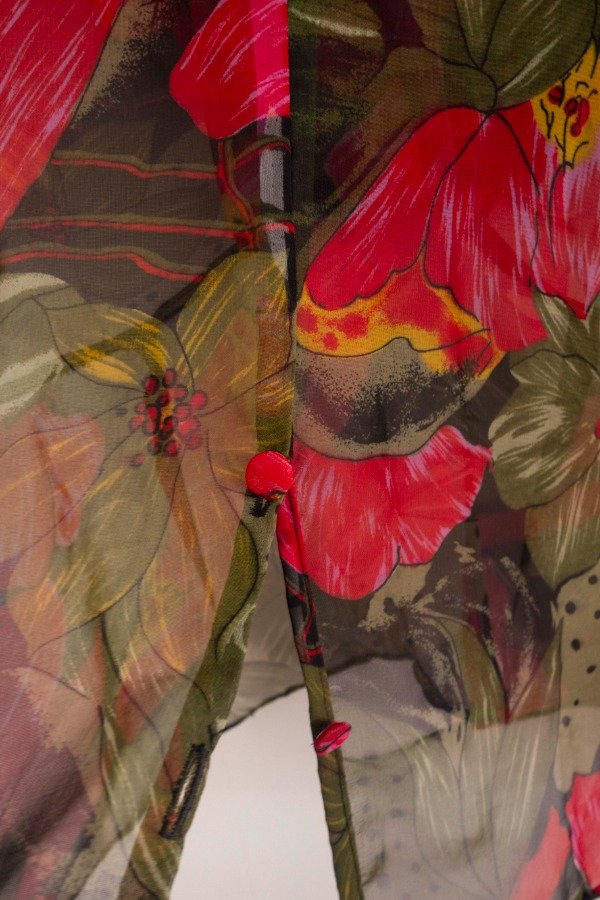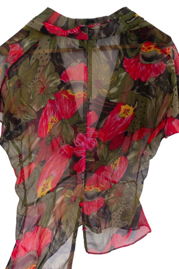 Camisa manga corta de gasa, con botones en delantero y recorte inferior.