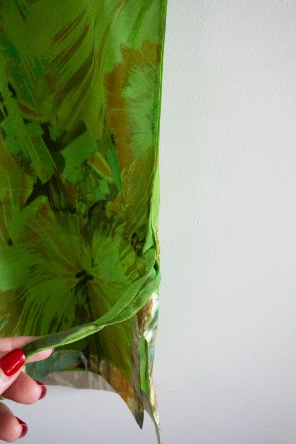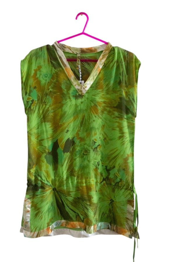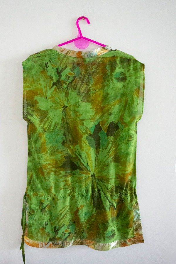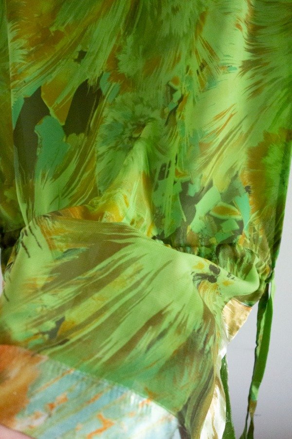 Tajos laterales y lazo para fruncir a la altura de la cadera.